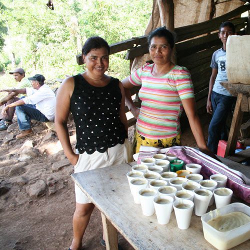 Amparo (on the right – she’s the president of the women’s agricultural co-op) made a traditional dessert for us and Mary helped her serve it up. It’s made from milk, corn, cinnamon, and sugar.