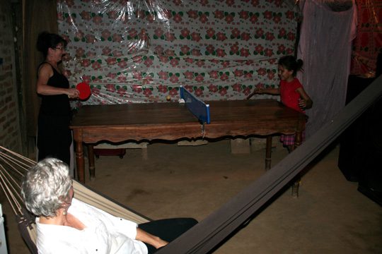 In the evenings, when we were finished with the trainings, we thoroughly enjoyed our time with Mariella and her daughters. Sue Ellen had brought ping pong supplies, which we set up on the dining table and had rousing matches. We also regaled each other with stories of how we got our biggest scars and acted out dramatic occurrences in our lives – such as when an angry bull nearly charged us on a mountain trail earlier that day! As you can imagine, doing all of these things in broken English and Spanish produced a lot of laughter and friendship!