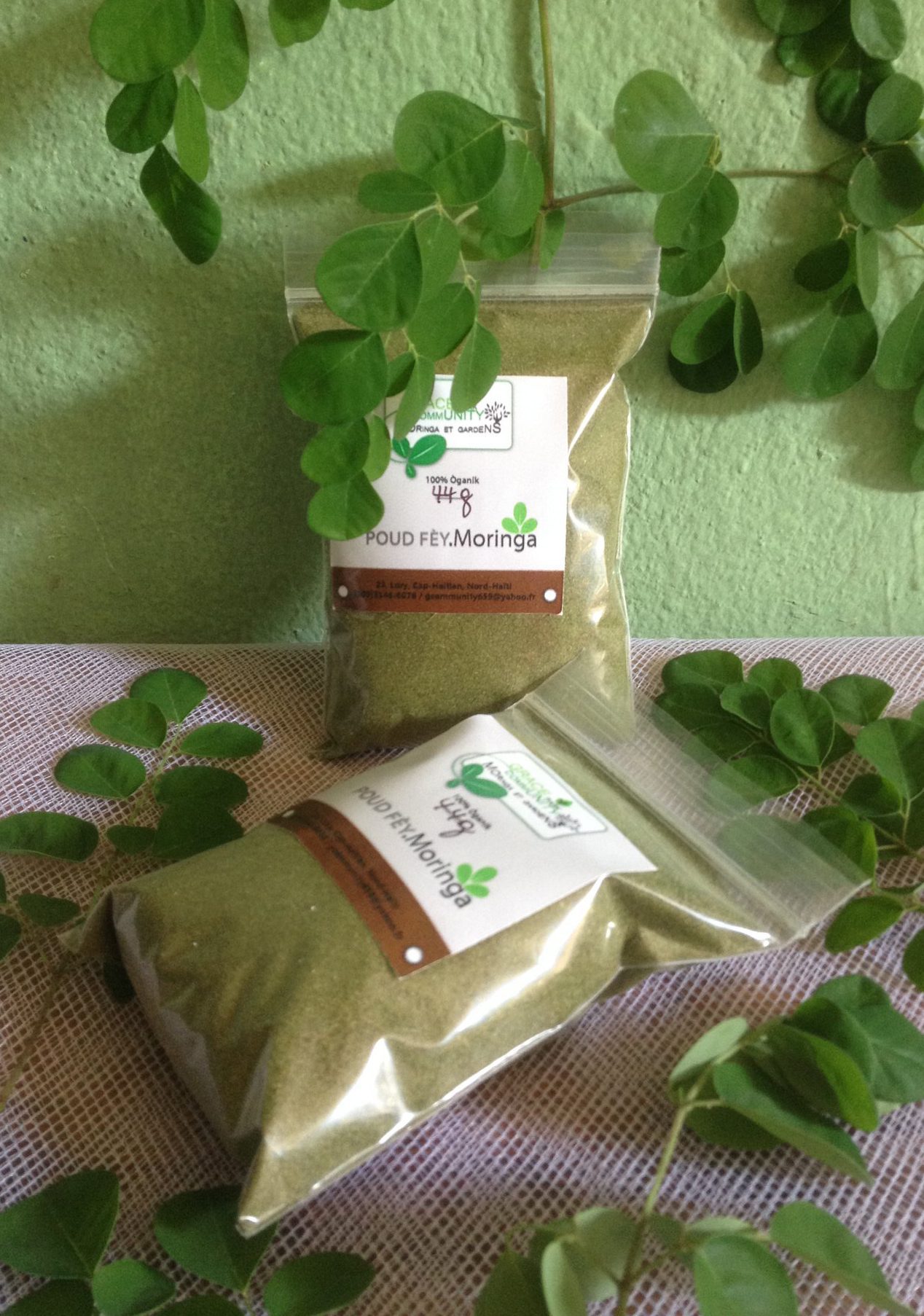Fritzner and Mariejocelyne make an excellent team creating jobs in their community and producing moringa products. Below you can see the results of their hard work in just some of their many products: moringa powder, tea, honey, soap, and oil.