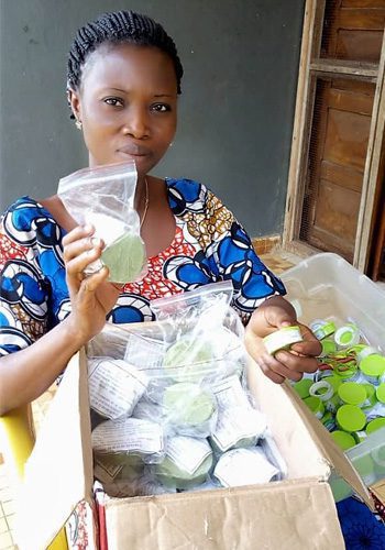 Jean and Olga’s efforts were quickly rewarded when just a week later they received the first three photos below from the group in Atakpame. They had already made their own batch of soap and also pomade (a skin ointment) to sell. The final photo is of Akossiwa, also from Atakpame, who already sells moringa powder and seeds. She can now add soap and pomade to her product line to create even more income for her family. Bringing good health and additional income — hand-crafted moringa products are an awesome resource!